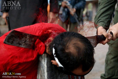 جلاد این گروه تروریستی یک عالم سنی را در حومه جنوبی استان حسکه در ملاء عام گردن زد.