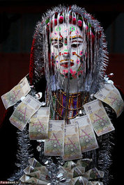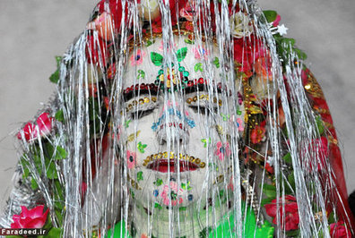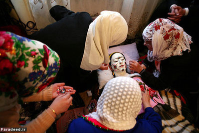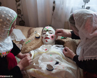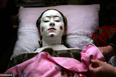 صورت عروس در حضور اقوام و خویشان به رنگ سفید درمیآید و به شکلی ترسناک