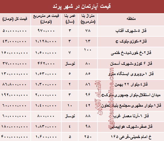 جدول/ مظنه مسکن در شهر جدید پرند؟