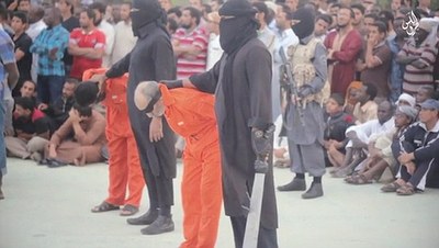 زدند. گفته می شود این تصاویر در لیبی -- که حدود 2000 تروریست داعشی در آن