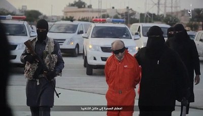 لیبی منتشر کرد. در این فیلم، عناصر داعش دو مرد را با چشمان بسته و لباس