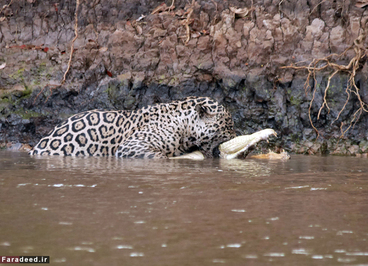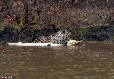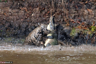 تصاویر / حمله برقآسای پلنگ به تمساح