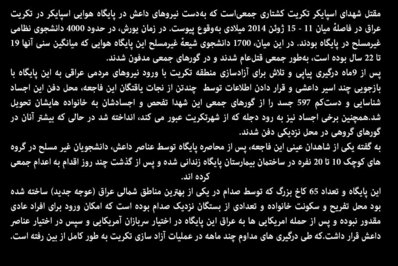 کشتاری جمعی‌است که به‌دست نیروهای داعش در پایگاه هوایی اسپایکر در تکریت عراق در فاصلهٔ میان ۱۱ - ۱۵ ژوئن ۲۰۱۴ میلادی به‌وقوع پیوست. در زمان یورش، در حدود ۴۰۰۰ دانشجوی نظامی غیرمسلح در پایگاه بودند.