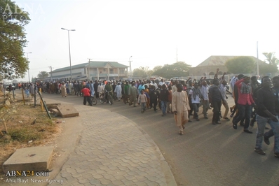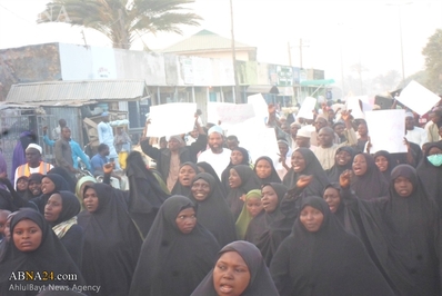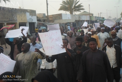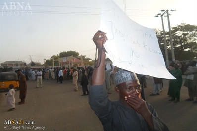 طرافداران جنبش اسلامی نیجریه در این تظاهرات پلاکاردهایی را در همسبتگی با شیخ ابراهیم زکزاکی رهبر این جنبش با عناوینی همچون «رهبر ما را آزاد کنید» در دست داشتند.