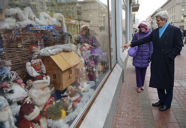 وزیر امور خارجه آمریکا بعد از گشت و گذار در فروشگاه های مسکو و خرید سوغاتی با ولادیمیر پوتین رئیس جمهوری روسیه دیدار کرد.