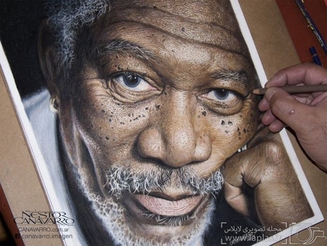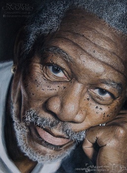 Néstor Canavarro تنها با استفاده از مداد رنگی ۵۰ ساعت را صرف کشیدن یک پرتره از مورگان فریمن کرده است. اندازه این کار ۳۰×۴۰ سانتیمتر است.