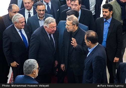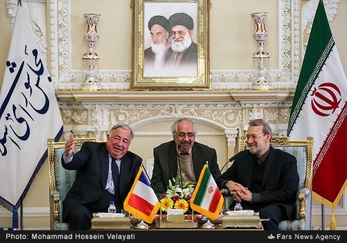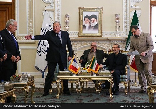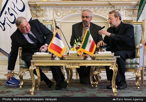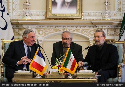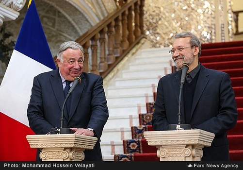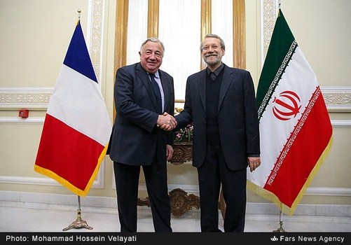 علیلاریجانی رئیس مجلس شورایاسلامی عصر شنبه بیستوهشتم آذر با ژرار لارشه رئیس مجلس سنایفرانسه دیدار وگفتگو کرد. علیلاریجانی با بیان اینکه از سفر آقایلارشه به ایران استقبال کردیم، افزود: سفر رئیس مجلس سنای فرانسه به ایران سفر مهمی است که میتواند در روابط دوجانبه و پارلمانی و موضوعات مختلف به خصوص تروریسم مؤثر باشد، امیدواریم سفر رئیس مجلس سنای فرانسه به ایران دارای دستاوردهای مفیدی میان دو کشور باشد، امیدواریم زمینهای برای همکاریهای گستردهتر بین ایران و فرانسه با این سفر فراهم شود.