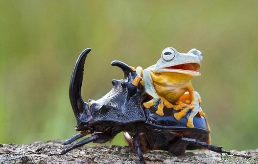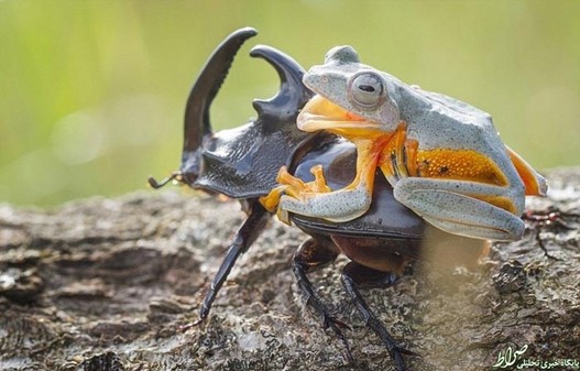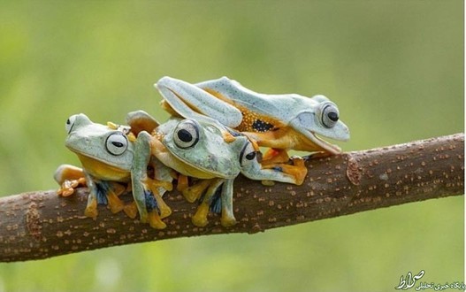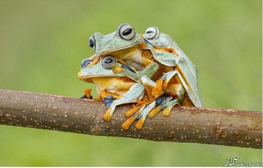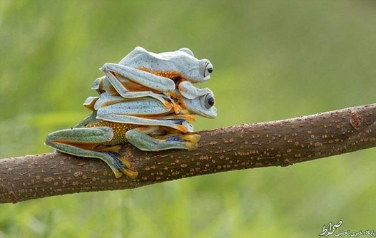 قورباغه های درختی اغلب در میان درختان بلوط، بید و ممرز مخفی می شوند و آنچنان به برگ های این درختان می چسبند که به زحمت می توان آنها را پیدا کرد؛ این نوع قورباغه ها کم و بیش بر روی گیاهان علفی با برگ های پهن یافت می شوند. تصاویر زیر که توسط یک عکاس حیات وحش گرفته شده، بازی سه قورباغه درختی را بر روی یک شاخه درخت در جنگل های اندونزی نشان می دهد.