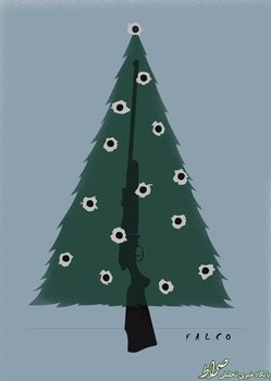 آغاز تعطیلات کریسمس ۲۰۱۶ و همزمانی آن با جنگ های خاور میانه، حملات تروریستی و کشتار انسان ها، قطع بی رویه درختان کاج و چشم طمع فروشگاه ها به جیب مشتریان برای خرید عید سوژه روز کاریکاتوریست ها شد.