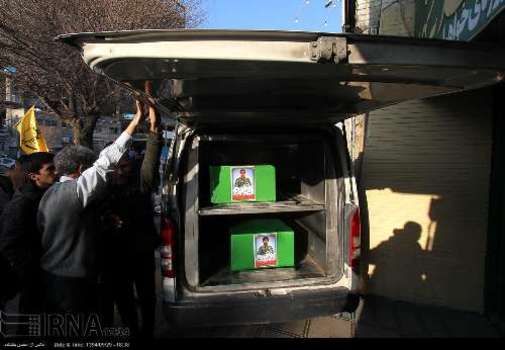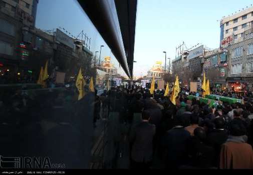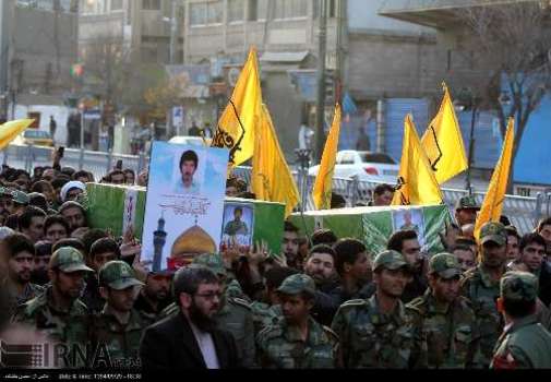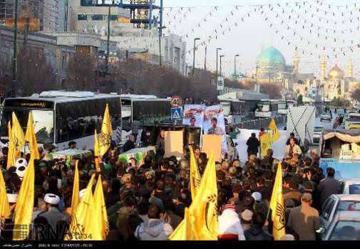 همزمان با شهادت امام حسن عسکری(ع) پیکر پاک دو شهید مدافع حرم ، حسین حسینی و ابراهیم سادات از مهدیه مشهد به سمت حرم مطهر رضوی تشییع شد
