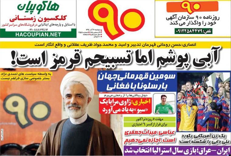 صفحه اول روزنامههای ورزشی دوشنبه ۳۰ آذر ۱۳۹۴