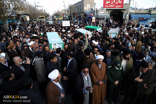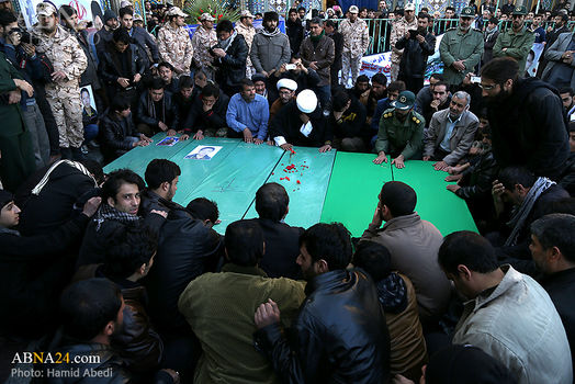 امروز ـ دوشنبه 30 آذرماه ـ پیکر شش تن از شهدای مدافع حرم در قم تشییع و تدفین شد. این شهدا از اعضای لشگر فاطمیون و تیپ زینبیون بودند که در نبرد با تروریست های تکفیری در سوریه به فیض شهادت نائل آمدند.