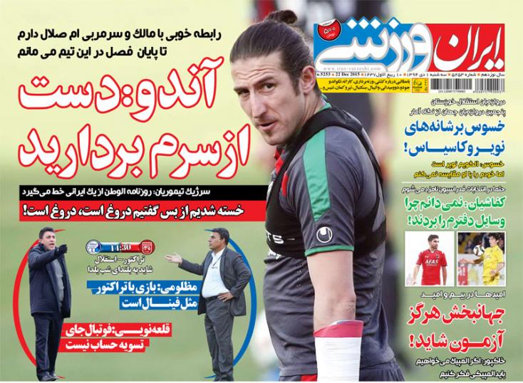 روزنامه های ورزشی سه شنبه ۱ دي ۱۳۹۴
