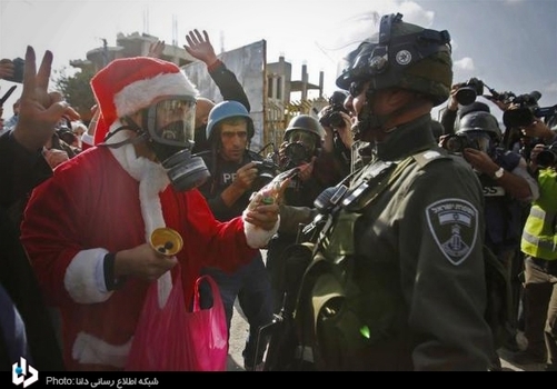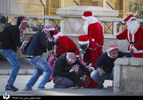 در آستانه فرا رسیدن روز کریسمس، مبارزان فلسطینی در کرانه باختری و در نزدیکی دیوار حائل با لباس بابانوئل با نظامیان صهیونیست درگیر شدند.