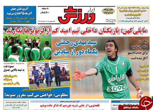 صفحه اول روزنامههای ورزشی پنجشنبه ۳ دی ۱۳۹۴