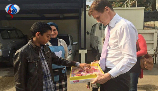 صفحه فیسبوک سفارت انگلستان در قاهره، تصاویر "جان کِی سون" سفیر لندن را در حال توزیع شیرینی به مناسبت زادروز پیامبر اکرم (ص) - که به روایت اهل سنت با روز چهارشنبه دوم دی ماه مطابق بود- منتشر کرد.