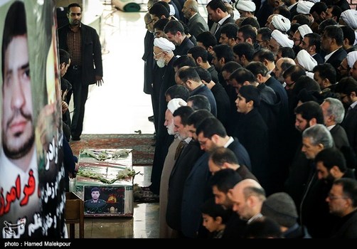مراسم تشییع پیکر شهید مدافع حرم محسن فرامرزی از اعضای تیم حفاظت آیتالله محمد امامی کاشانی ظهر امروز پس از اقامه نماز جمعه در مصلی تهران برگزار شد.