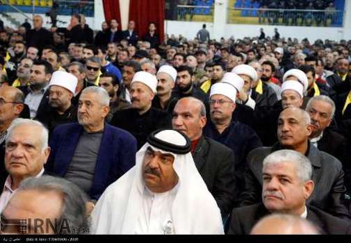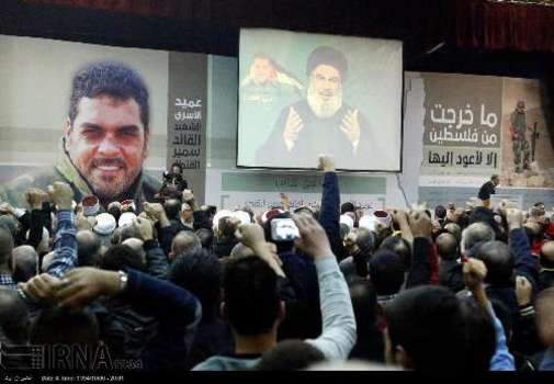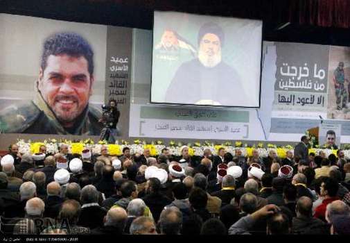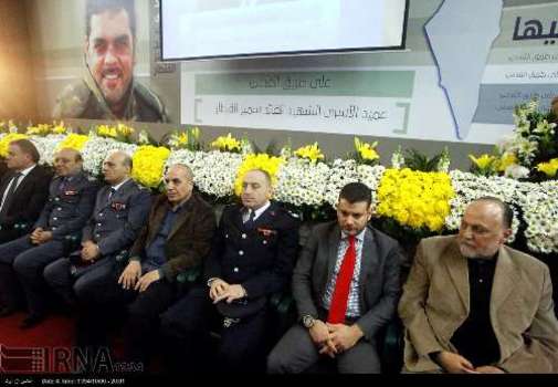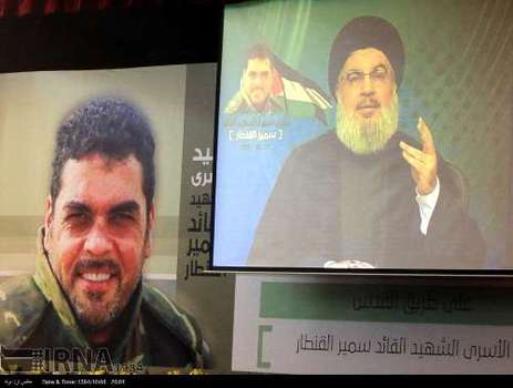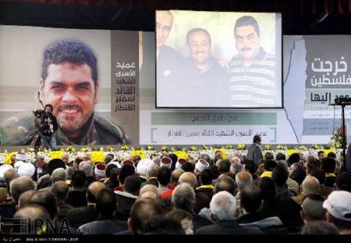 مراسم هفتمین روز شهادت سمیر القنطار سردار اسیران آزاده لبنانی در مجتمع تربیتی شاهد در ضاحیه جنوبی بیروت با سخنرانی سیدحسن نصرالله دبیرکل حزب الله و هیاتی از مجلس شورای اسلامی جمهوری اسلامی ایران برگزار شد