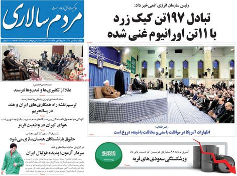صفحهاول روزنامههای چهارشنبه ۹ دی ۱۳۹۴