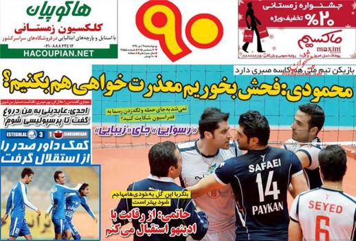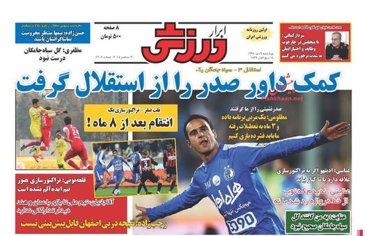 صفحهاول روزنامههای ورزشی چهارشنبه ۹ دی ۱۳۹۴