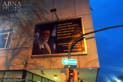 آنها یک بیلبورد تبلیغاتی را در جاده اصلی این شهر اجاره کردند و در آن پوستر بزرگی از رهبر معظم انقلاب به همراه ترجمه آلمانی عبارتی از نامه دوم ایشان به جوانان غربی را نصب کردند. عبارتی که رهبر انقلاب نوشته بودند که رنج هر انسانی در هر نقطه از جهان، به خودی خود برای هم نوعان اندوه بار است.