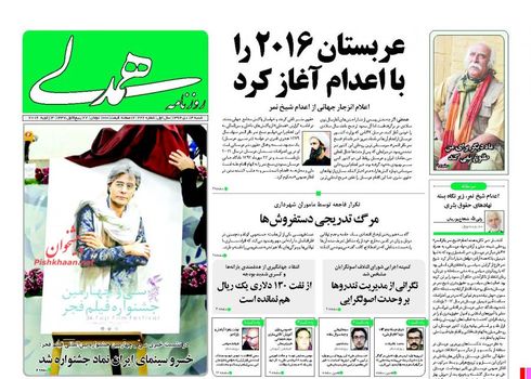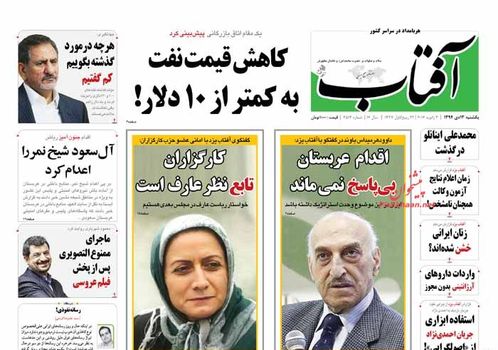 صفحهاول روزنامههای یکشنبه ۱۳ دی ۱۳۹۴