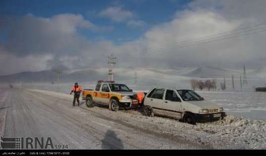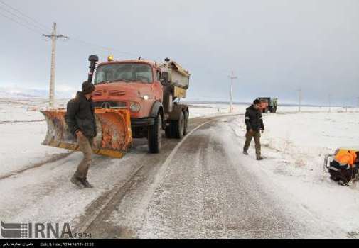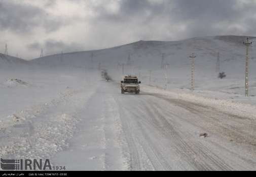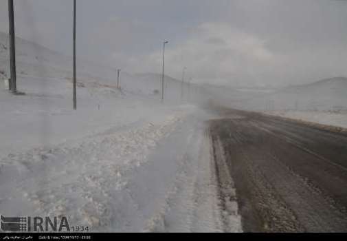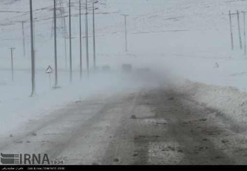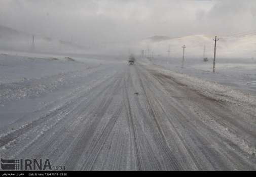 تصویر، برف، کولاک، سرما و یخ زدگی در جاده های استان زنجان را نشان می دهد.