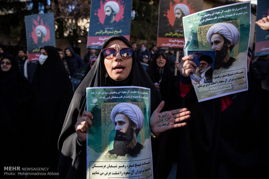 دانشجویان بسیجی دانشگاه‌های تهران در اعتراض به اعدام رهبر شیعیان عربستان به دست رژیم آل سعود،بعد از ظهر امروز یکشنبه در خیابان های اطراف سفارت عربستان سعودی در تهران تجمع کردند.