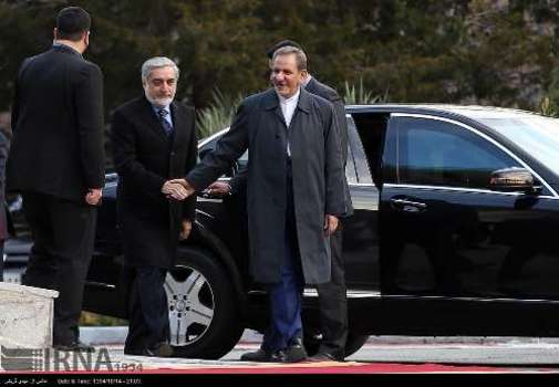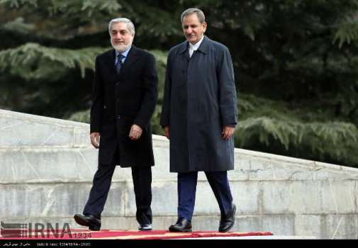 عبدالله عبدالله رئیس اجرایی دولت افغانستان روز دوشنبه در مجموعه فرهنگی-تاریخی سعدآباد مورد استقبال رسمی اسحاق جهانگیری معاون اول رئیس جمهوری قرار گرفت و با حضور طرفین دو تفاهم نامه همکاری بین وزرای دولت های متبوع امضاء شد .