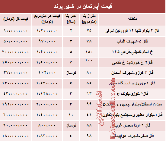 جدول/ مظنه مسکن در شهر جدید پرند؟
