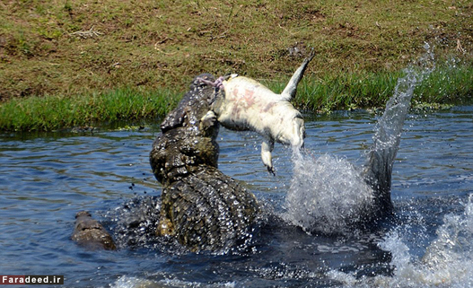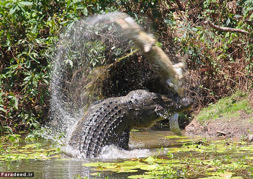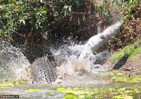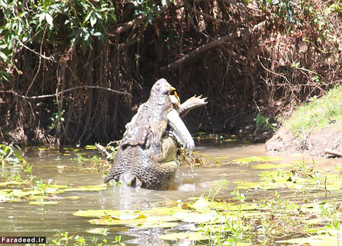 صراط: "ساندرا بل" عکاس حیات وحش که به منطقه حفاظت شده "کیپ یورک" در شمال "کوئیرنزلند" رفته بود با لحظات دراماتیک از حمله یک کروکودیل بالغ به همنوع خود و خوردن او مواجه شد.