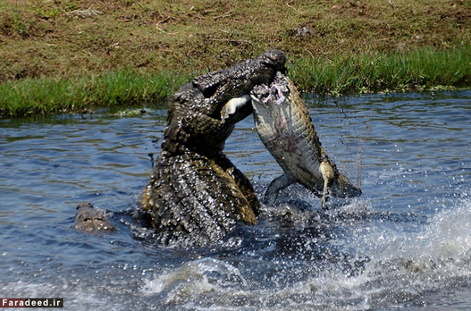 جدال خونین دو کروکودیل گرسنه +تصاویر