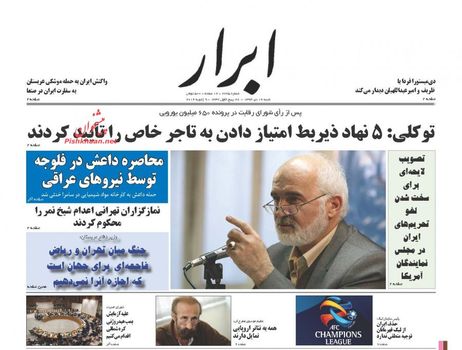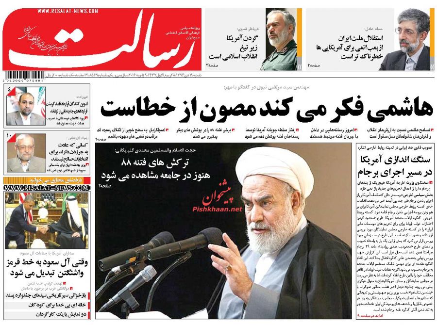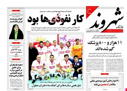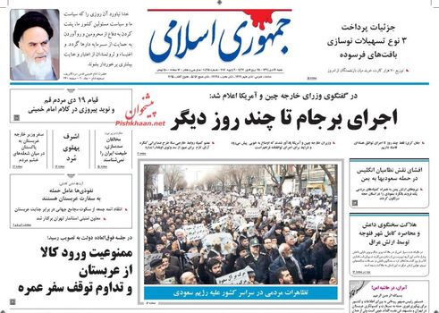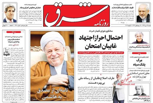 صفحه اول روزنامه های شنبه ۱۹ دی ۱۳۹۴