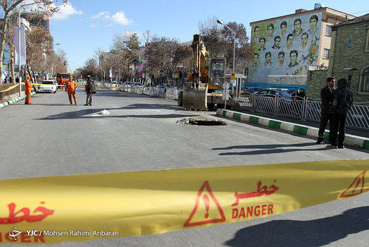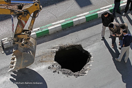نشست خیابان نزدیک تونل قطار شهری مشهد