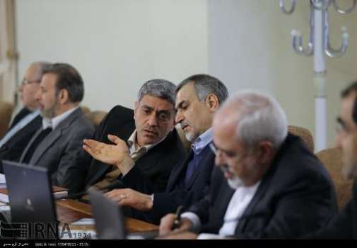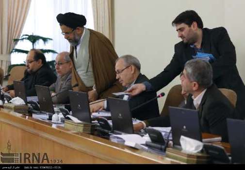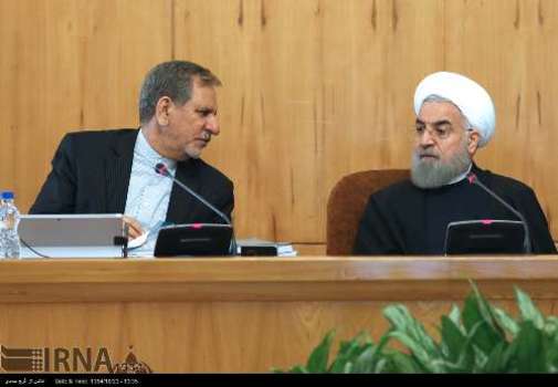 حجت الاسلام و المسلمین حسن روحانی رئیس جمهور (سمت راست) و اسحاق جهانگیری معاون اول رئیس جمهور در جلسه روز چهارشنبه هیأت دولت حضور دارند.