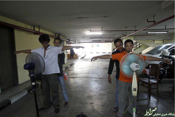 امتحان رانندگان تاکسی موتوری در اندونزی و مطمئن شدن از بوی عرق بدن داوطلبان