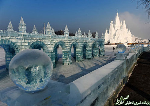 این قلعهی برفی 51 متری بانام «تاج یخ-برف» در نقطهای خوشمنظره از سان آیلندِ هاربین، واقع در شمال شرقی استان هیلونگ جیانگ چین و در زمینی به مساحت 2800 مترمربع ساختهشده است.