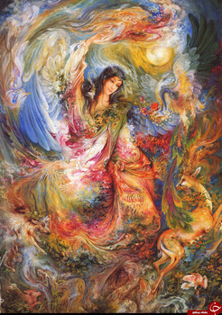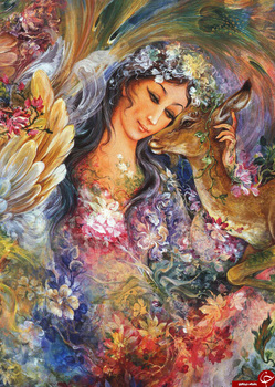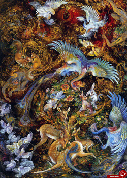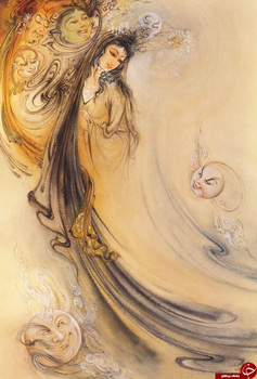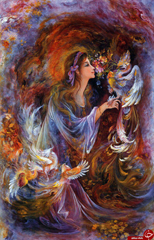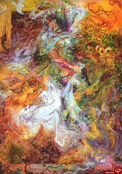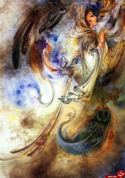 گرد، خطوط نرم و قدرتمند و خلقت رنگهای مواج هستند. آثار محمود فرشچیان یک