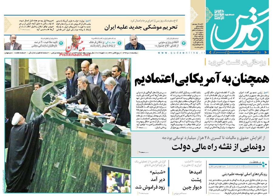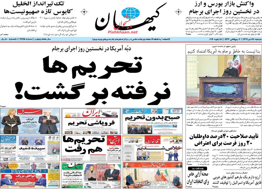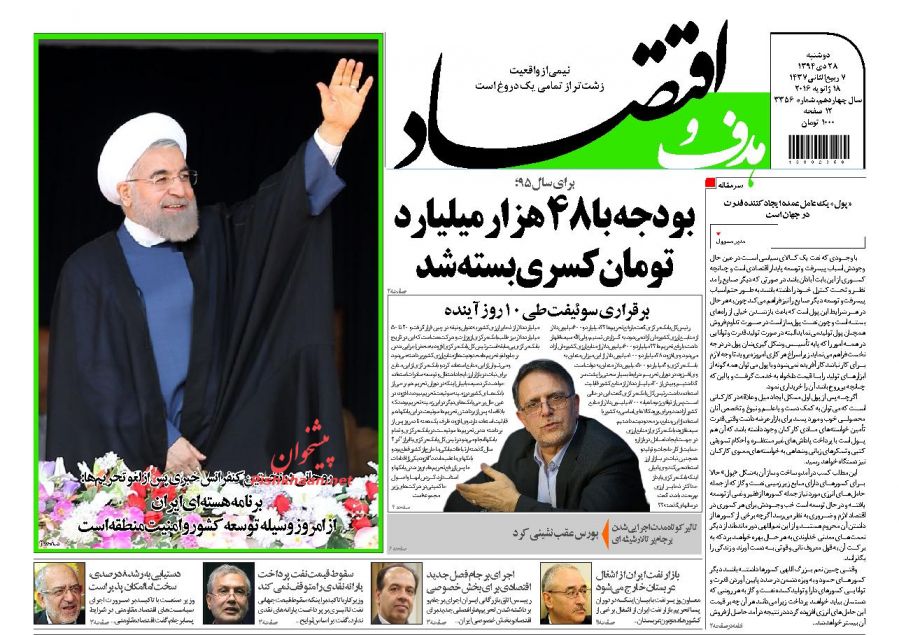 صفحه اول روزنامههای دوشنبه ۲۸ دی ۱۳۹۴