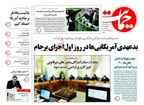 صفحه اول روزنامه‌های دوشنبه ۲۸ دی ۱۳۹۴