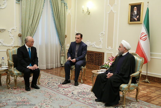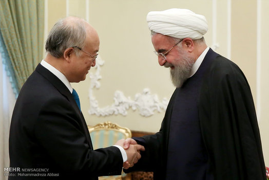 یوکیا آمانو مدیر کل آژانس بین المللی انرژی اتمی بعد از ظهر امروز دوشنبه با حجت السلام حسن روحانی رئیس جمهور دیدار و گفتگو کرد.