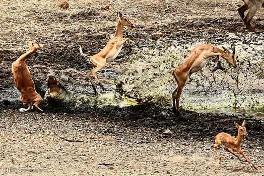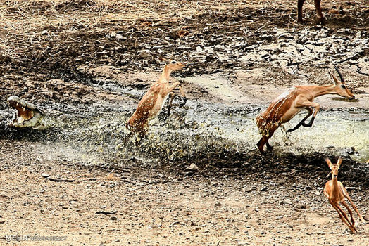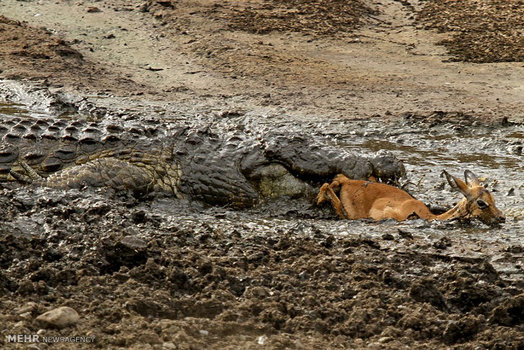 تصاویر/ شکار بچه آهو توسط کروکدیل