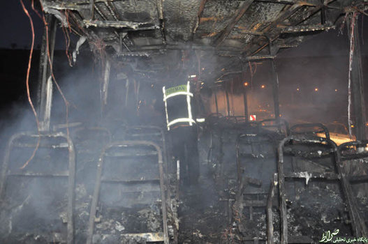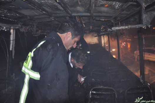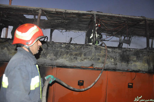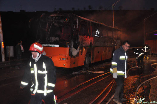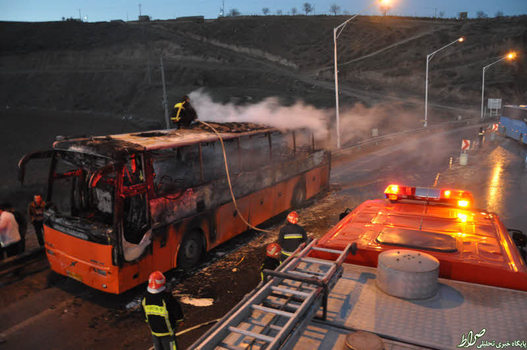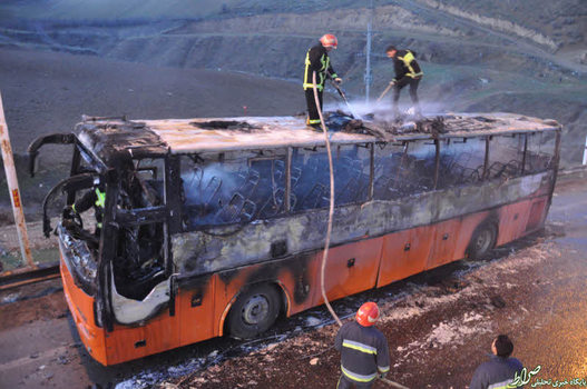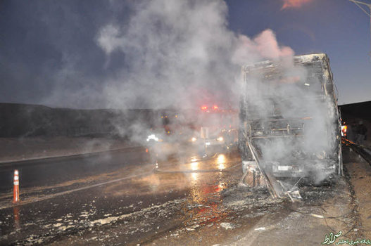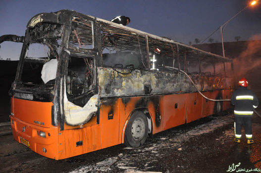 تصاویر/ حریق اتوبوس ولوو با ۱۷ سرنشین