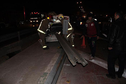 مسیر اصلی منحرف شد و به شدت با گاردریل کنار بزرگراه برخورد کرد به طوریکه