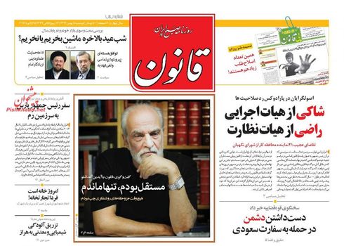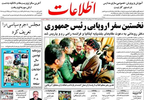 صفحه اول روزنامههای دوشنبه ۵ بهمن ۱۳۹۴