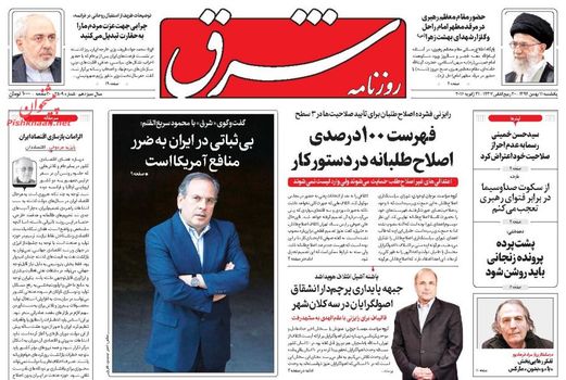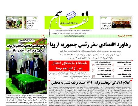 صفحه اول روزنامههای یکشنبه ۱۱ بهمن ۱۳۹۴