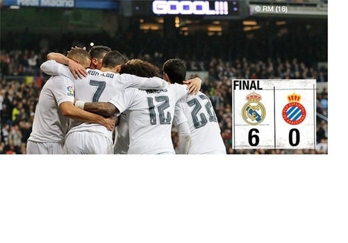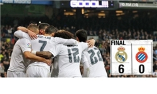 صراط: رئال مادرید در چارچوب هفته بیست و دوم به مصاف اسپانیول تیم دوم شهر بارسلون رفت و با 6 گل و هت تریک رونالدو به پیروزی رسید و با یک اختلاف امتیاز با اتلتیکو چسبید.