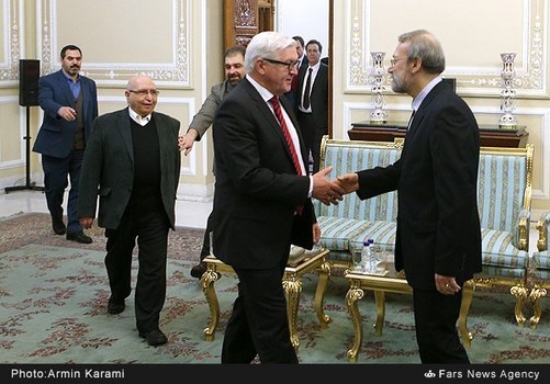 فرانک والتر اشتاینمایر وزیر امور خارجه آلمان صبح چهارشنبه چهاردهم بهمن ماه با علی لاریجانی رئیس مجلس شورای اسلامی دیدار و گفت وگو کرد.