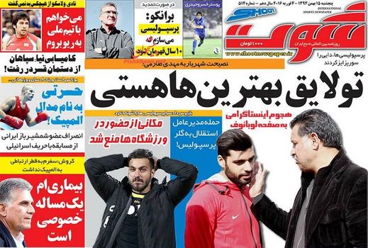 صفحه اول روزنامههای ورزشی پنجشنبه ۱۵ بهمن ۱۳۹۴