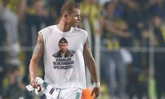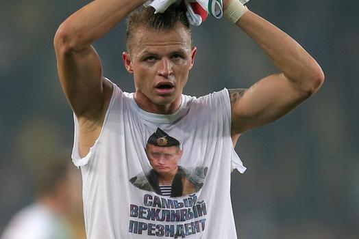 صراط: باشگاه خبرنگاران جوان به نقل از گاردین نوشت: «دیمیتری تاراسوف،» بازیکن تیم «لوکوموتیو مسکو،» پس از پایان بازی با «فنرباغچه» ترکیه، که در استانبول ترکیه برگزار شد، پیراهن خود را از تن خارج کرد و تیشرتی را با عکس «ولادیمیر پوتین،» رئیسجمهور روسیه، به نمایش گذاشت. پوتین در این عکس کلاه ملوانی بر سر دارد. نوشتهی «مؤدبترین رئیسجمهور» هم بر روی این تیشرت و زیر تصویر پوتین دیده میشود.